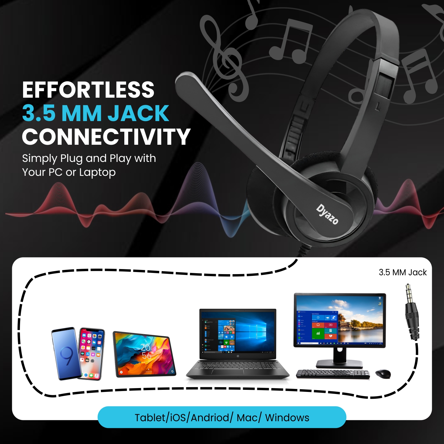 High-Quality Sound: The Dyazo Wired On-Ear Headphones deliver crisp and clear audio, ensuring you can hear every detail during office calls and online classes. Experience enhanced sound quality for effective communication.